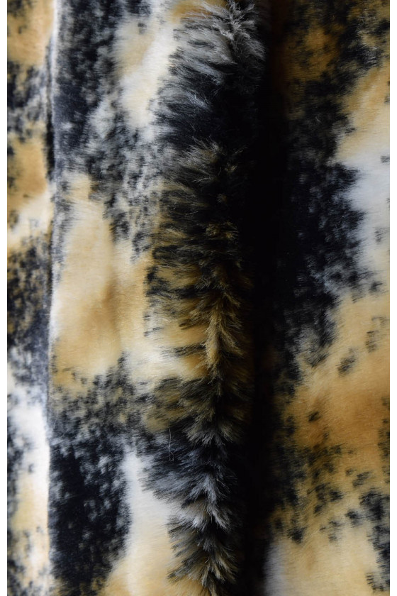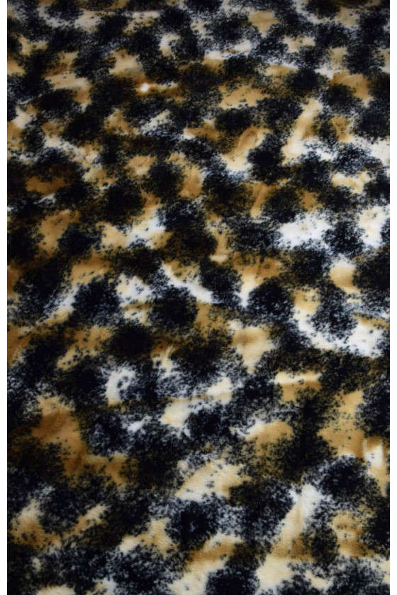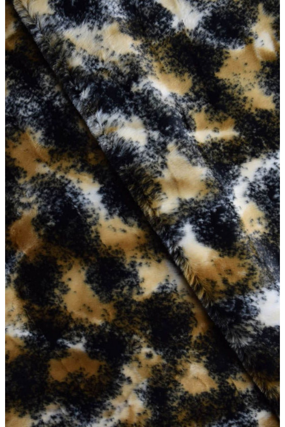Pelliccia imitazione italiana nei colori nero, beige e crema con motivi a toppa. Il tessuto è più spesso, leggermente rigido con un pelo lungo circa 0,5 cm.