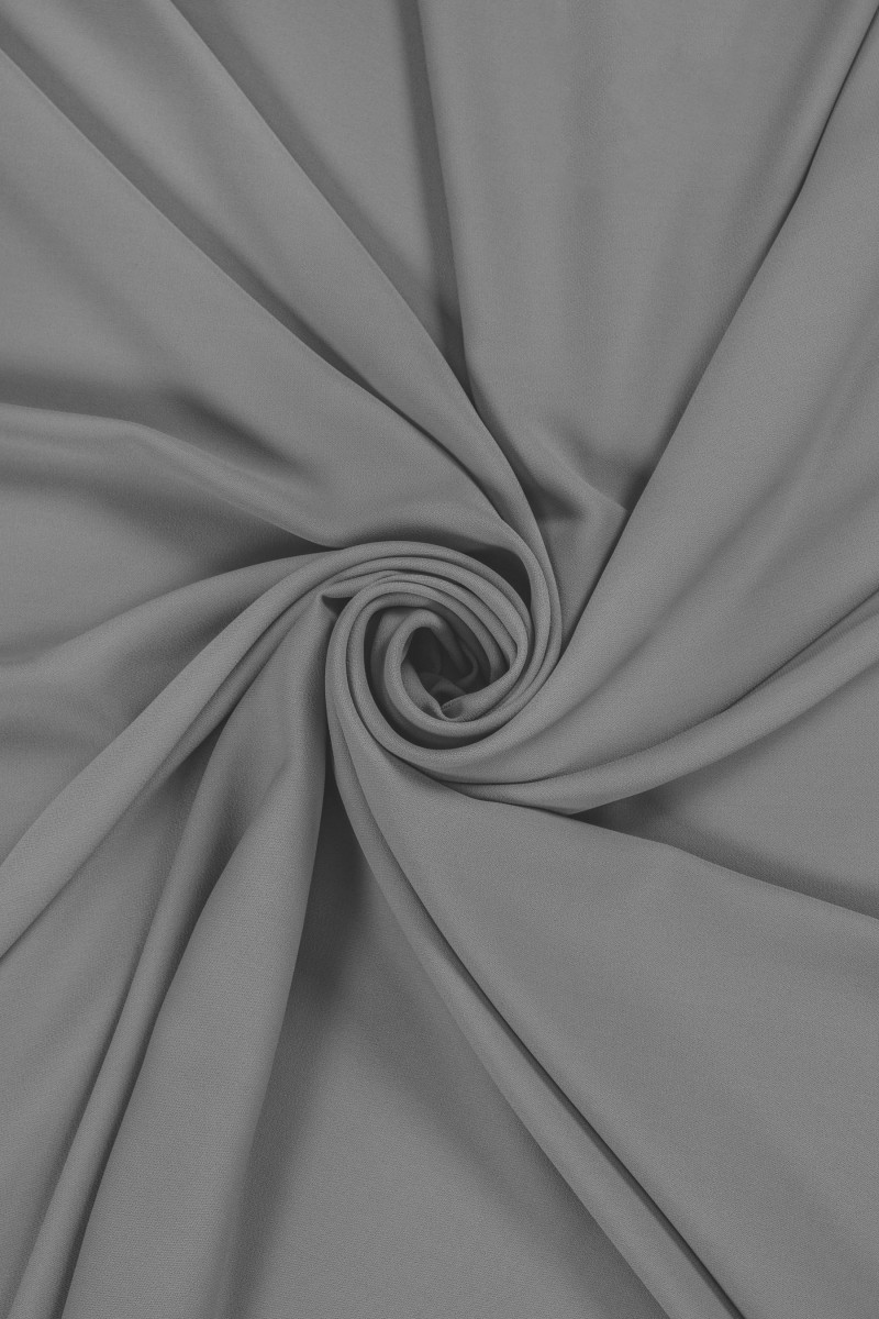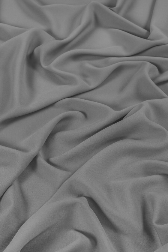 Abito in tessuto cadi italiano in grigio, liscio da un lato e tessuto georgette dall'altro. Il tessuto dell'abito Cadi è opaco, carnoso, fluido (pesante) e anelastico. Puoi usarlo per cucire abiti, camicette, gonne.