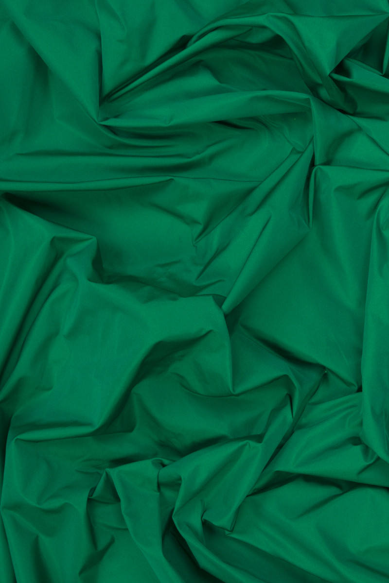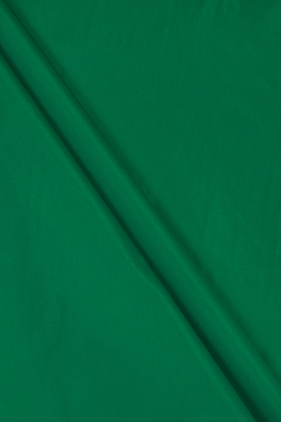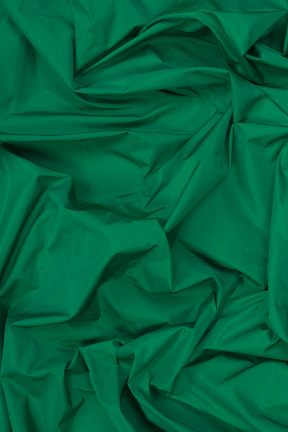 Tessuto in taffetà di poliestere italiano di colore verde. Il taffetà è un tessuto sottile ma rigido con una caratteristica lucentezza delicata.