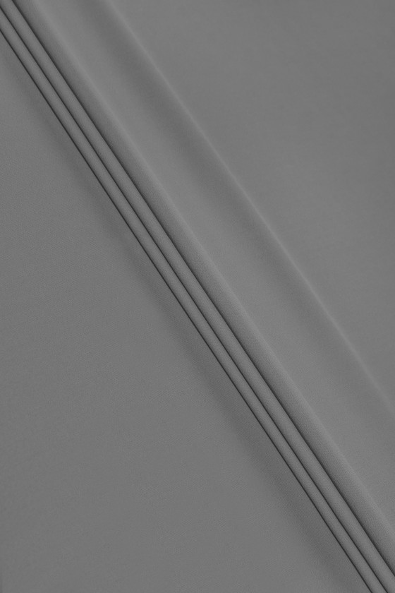 Tessuto italiano cadi abito in grigio, liscio da un lato e intreccio georgette dall'altro. Il tessuto del vestito Cadi è opaco, carnoso, fluido (pesante) e anelastico. Puoi usarlo per cucire abiti, camicette, gonne.