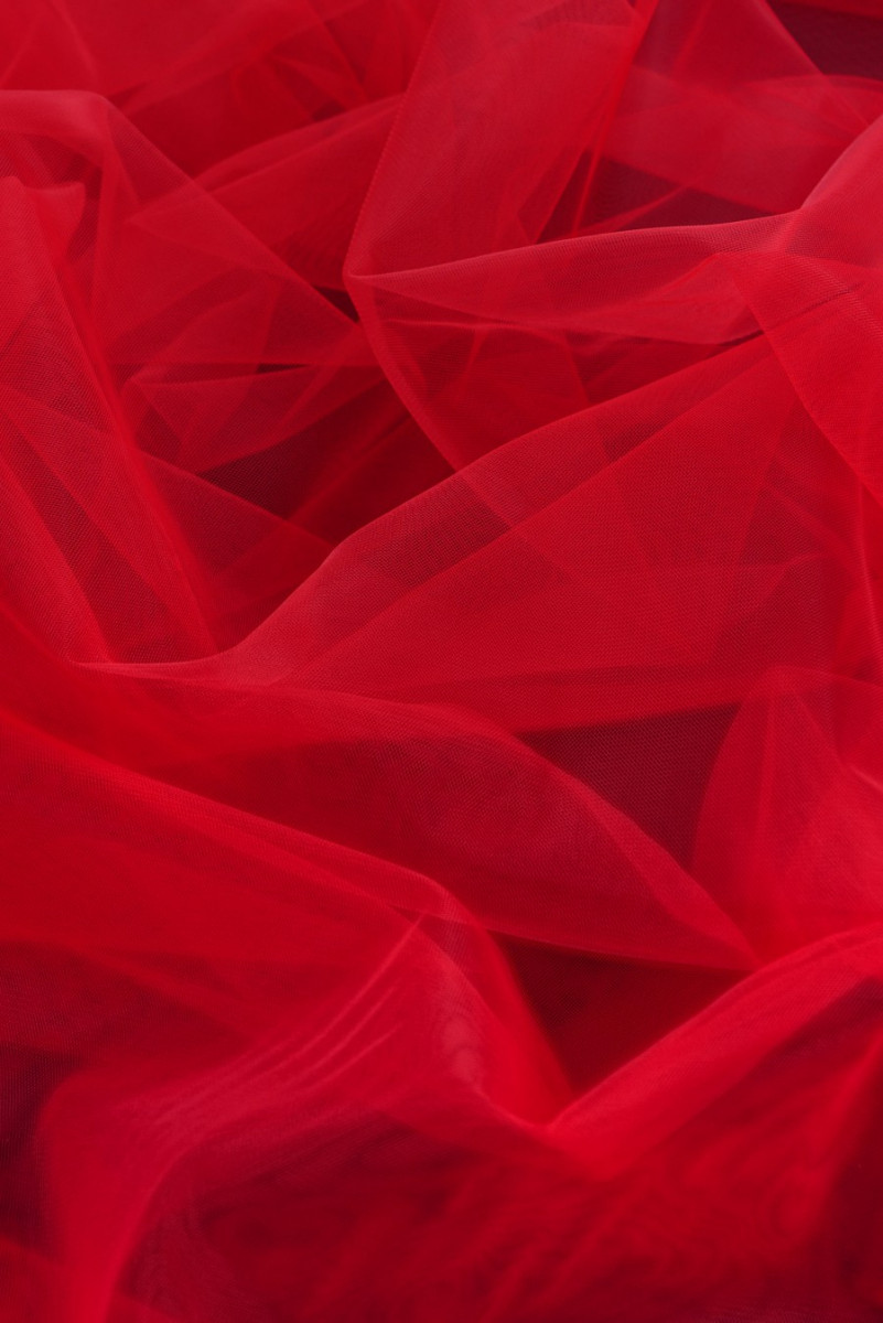 Morbido tulle di colore rosso, intrecciato a maglie molto piccole, delicato, elastico da un lato. Larghezza 280 cm.
