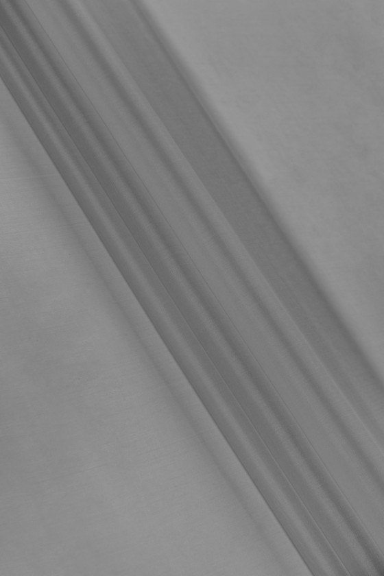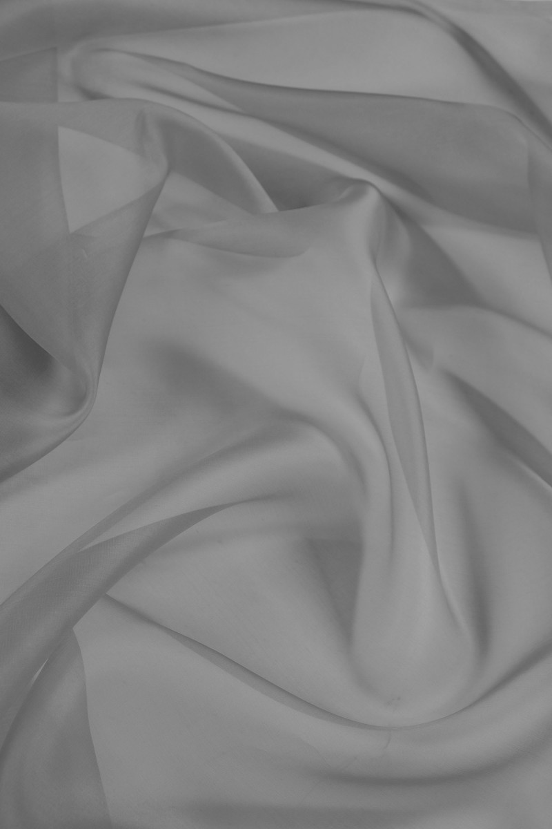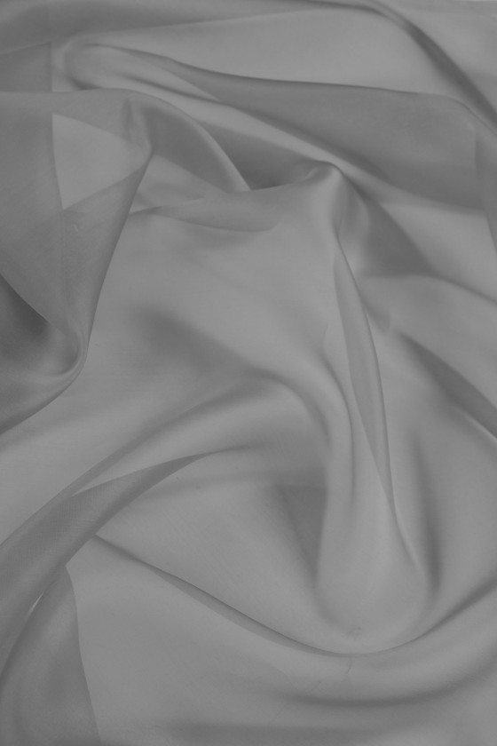 Tessuto italiano 100% organza di seta di colore grigio. L'organza di seta naturale è un tessuto sottile, trasparente ma rigido con una delicata lucentezza caratteristica dei tessuti di seta.