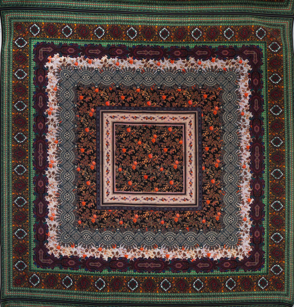 Crepe italiana 100% seta in taglia coupon 135 cm* 140 cm. Un'interessante combinazione di motivi floreali e orientali nei colori autunnali. Il crêpe di seta è un tessuto delicato, sottile, semi-opaco. È morbido al tatto e si adatta molto bene. Può essere utilizzato per evocare abiti ariosi, camicette delicate, gonne, sciarpe, sciarpe.