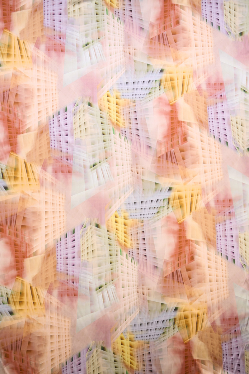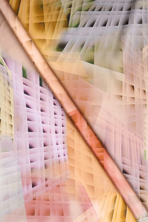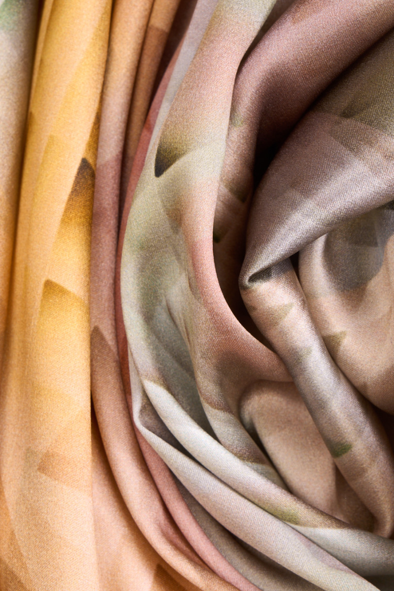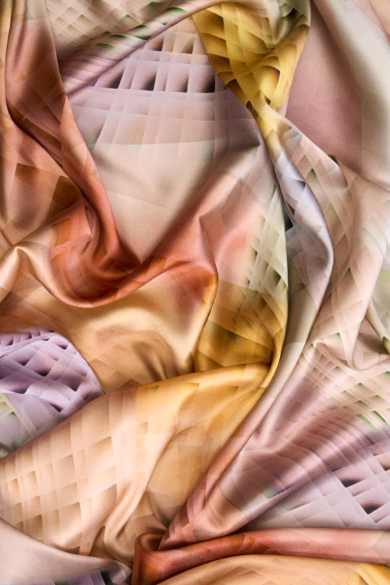 Raso di seta italiana con l'aggiunta di elastan in un motivo pastello che dona un aspetto tridimensionale. Il motivo dei quadri è posto a diverse angolazioni, regolarmente ripetuto su tutto il materiale. Il tessuto è elastico, fluido, delicato al tatto, morbido e opaco. Un design molto interessante nei colori autunnali è perfetto per cucire una camicia, una gonna ariosa o un vestito.