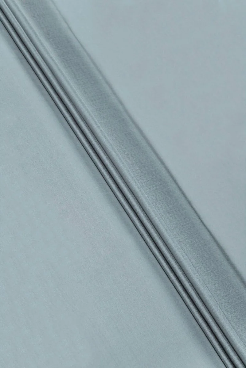 Tessuto italiano 100% chiffon di seta con un'interessante trama di due colori di fili: nero e blu, che creano un effetto bicolore. Il tessuto è molto delicato, arioso, trasparente e poco flessibile. Perfetto per abiti, gonne e camicette ariose, puoi anche cucire una bella sciarpa.