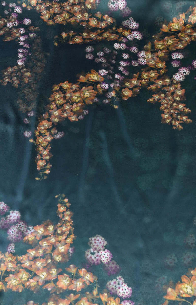 COUPON in seta con fiori 125cm