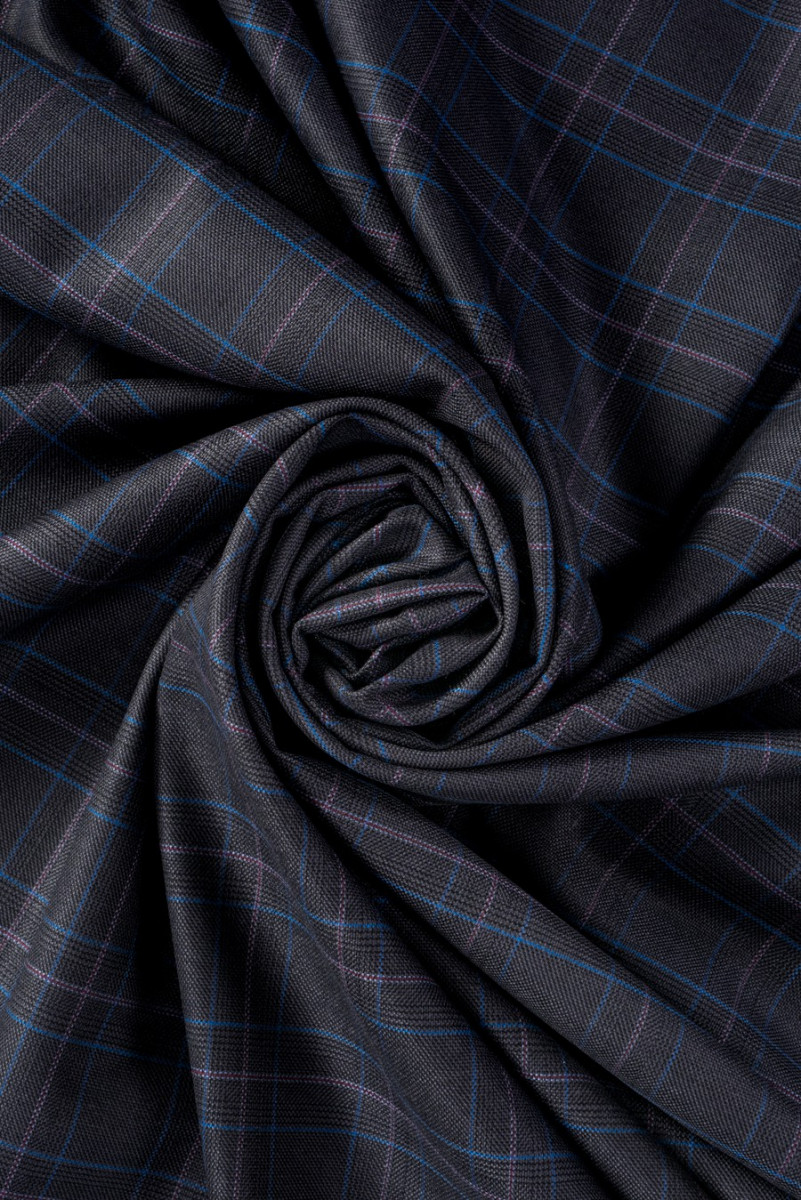 Tessuto per costumi italiani di alta qualità. Il motivo a scacchi più alla moda nei seguenti colori: grafite, blu, bordeaux.