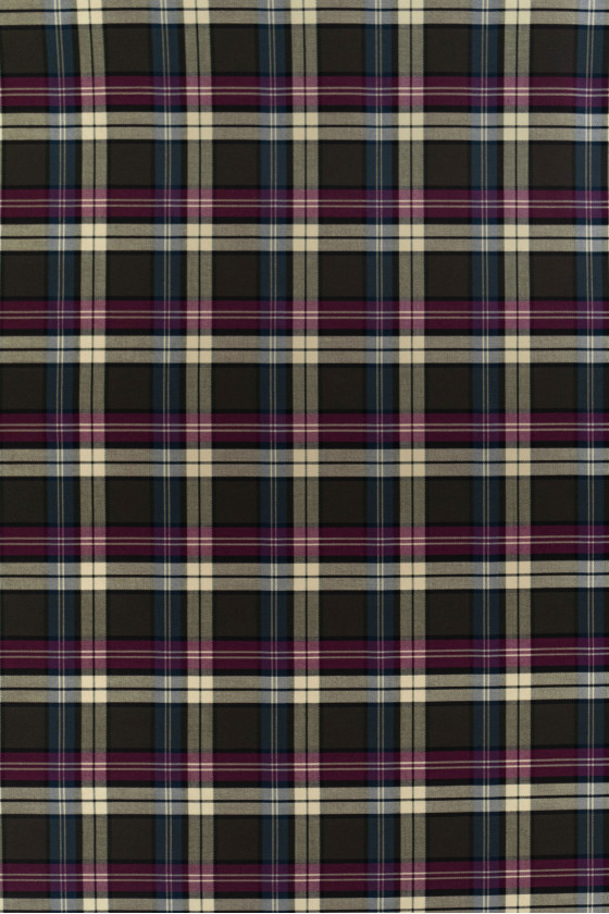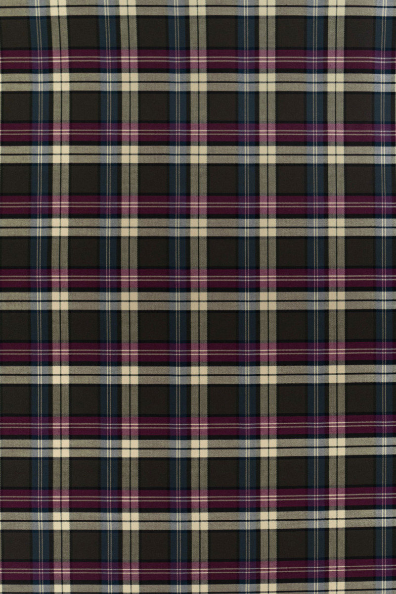 Tessuto costume italiano a scacchi (10 cm) nei colori beige, viola, blu e verde oliva. Un tessuto morbido con una trama fitta che ricorda la lana. Perfetto per cucire un abito, un pantalone, una gonna o un vestito.